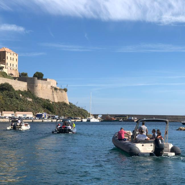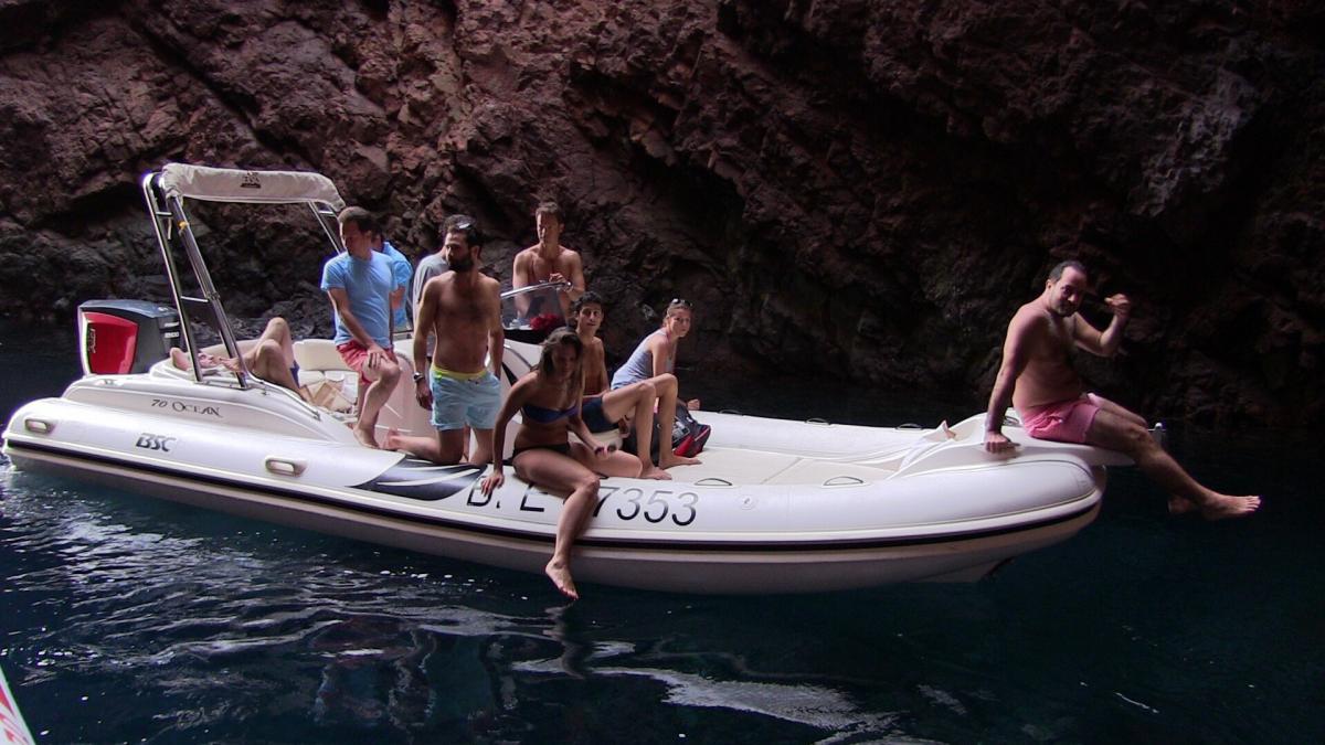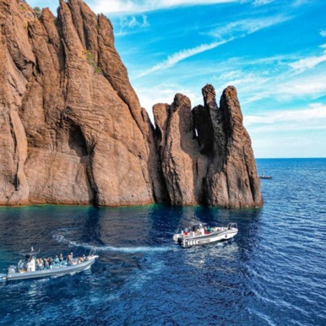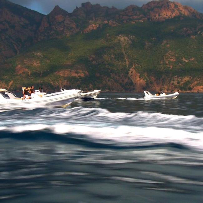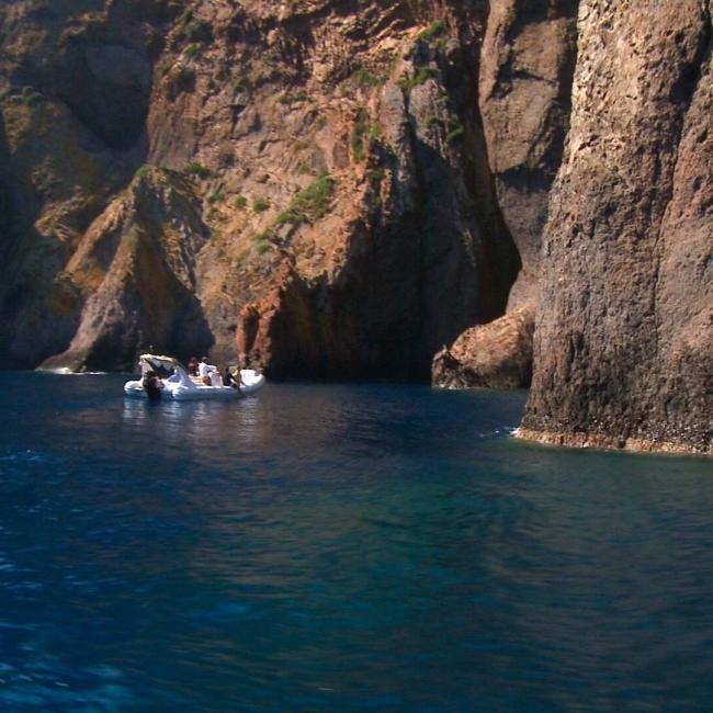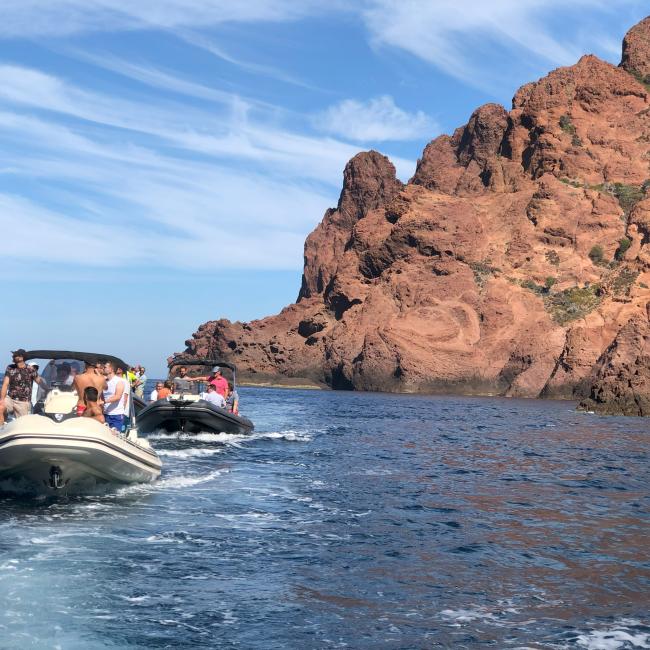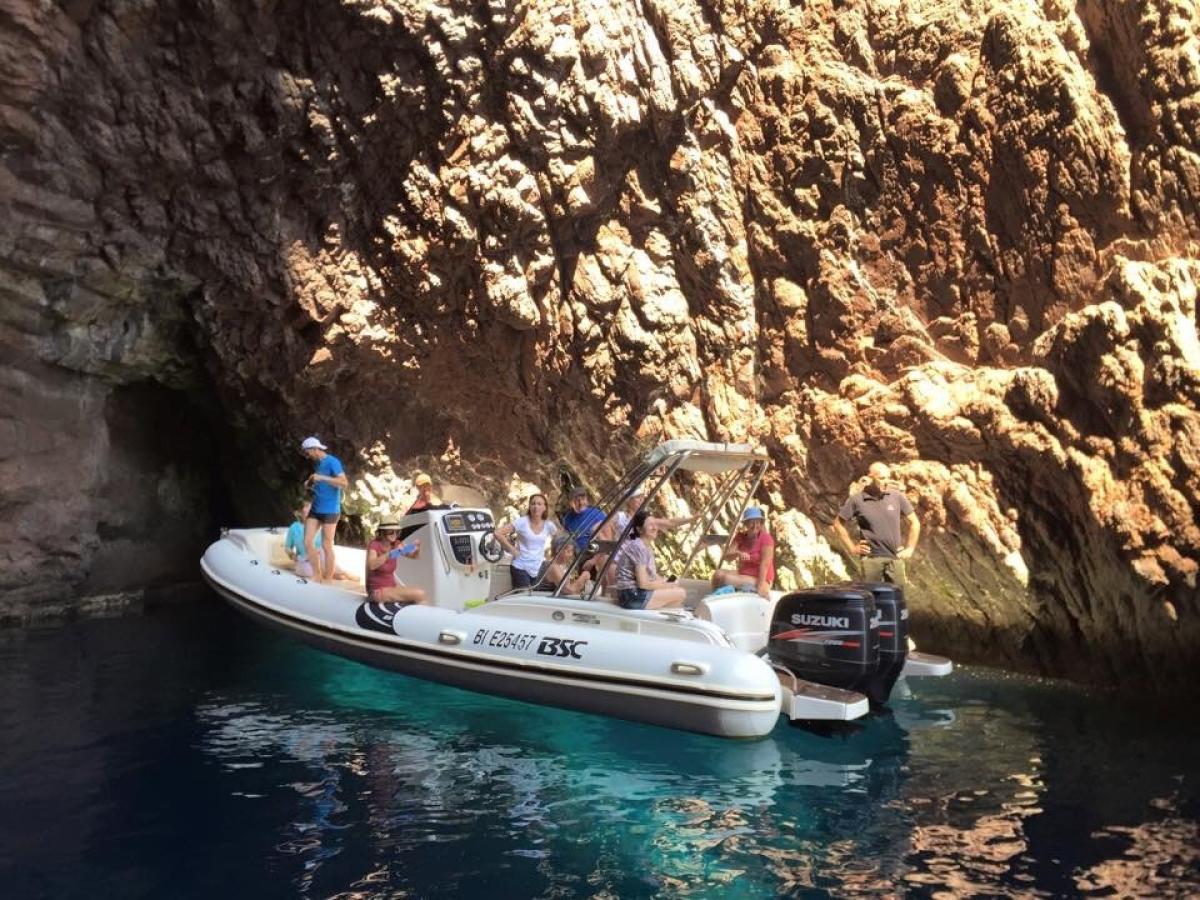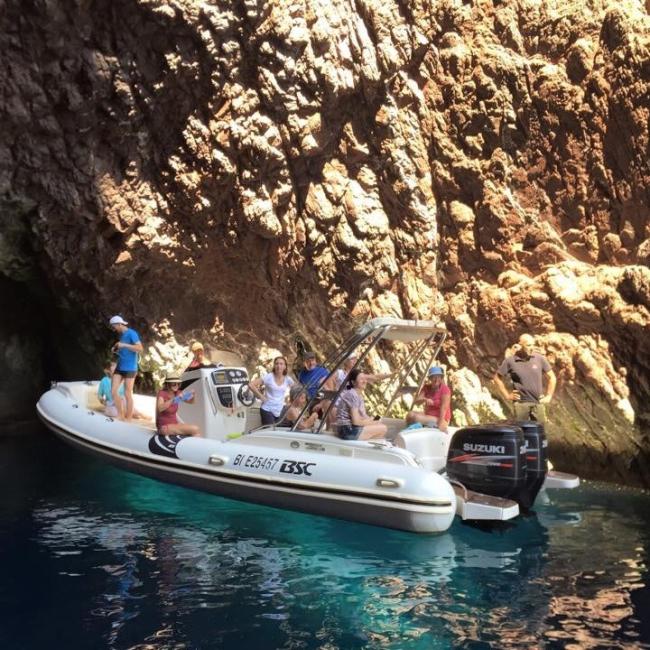 Departing from the marina of Calvi, or from the small fishing port of Galéria where we have been established for 15 years, we set off aboard semi-rigid boats of exceptional size. The Tra Mare e Monti guides on board, all of Corsican origin, seat each participant on comfortable benches before presenting the schedule of the day and the proposed destination.