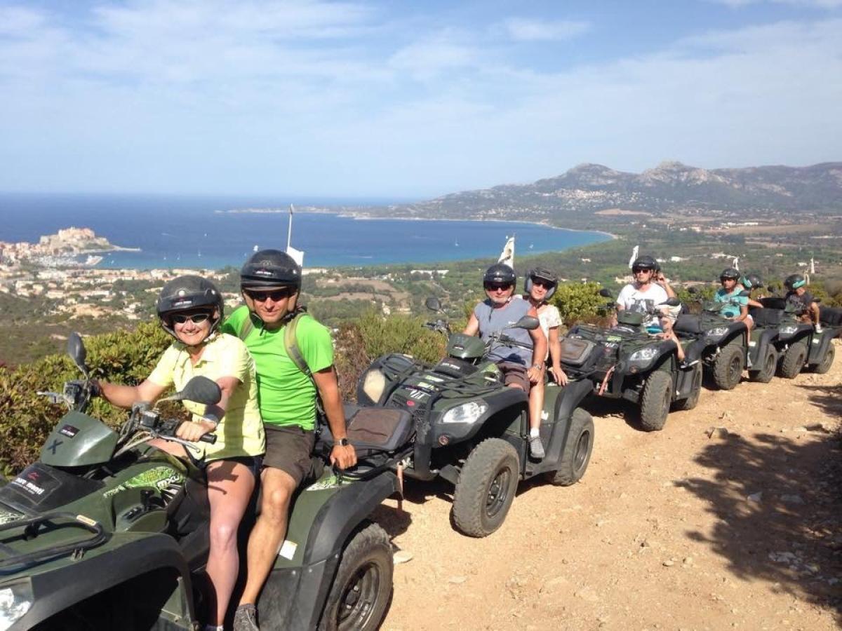 The land group heads out on quad bikes toward the trails overlooking Calvi, offering panoramic views of the bay, the mountains and surrounding villages. The tracks are technical yet accessible to all, thanks to the guidance and assistance of our certified guides. We reach the chapel of Madonna di a Serra for an aperitif and a discussion about the history of Corsica before alternating activities toward the Revellata peninsula and its coastal trails.