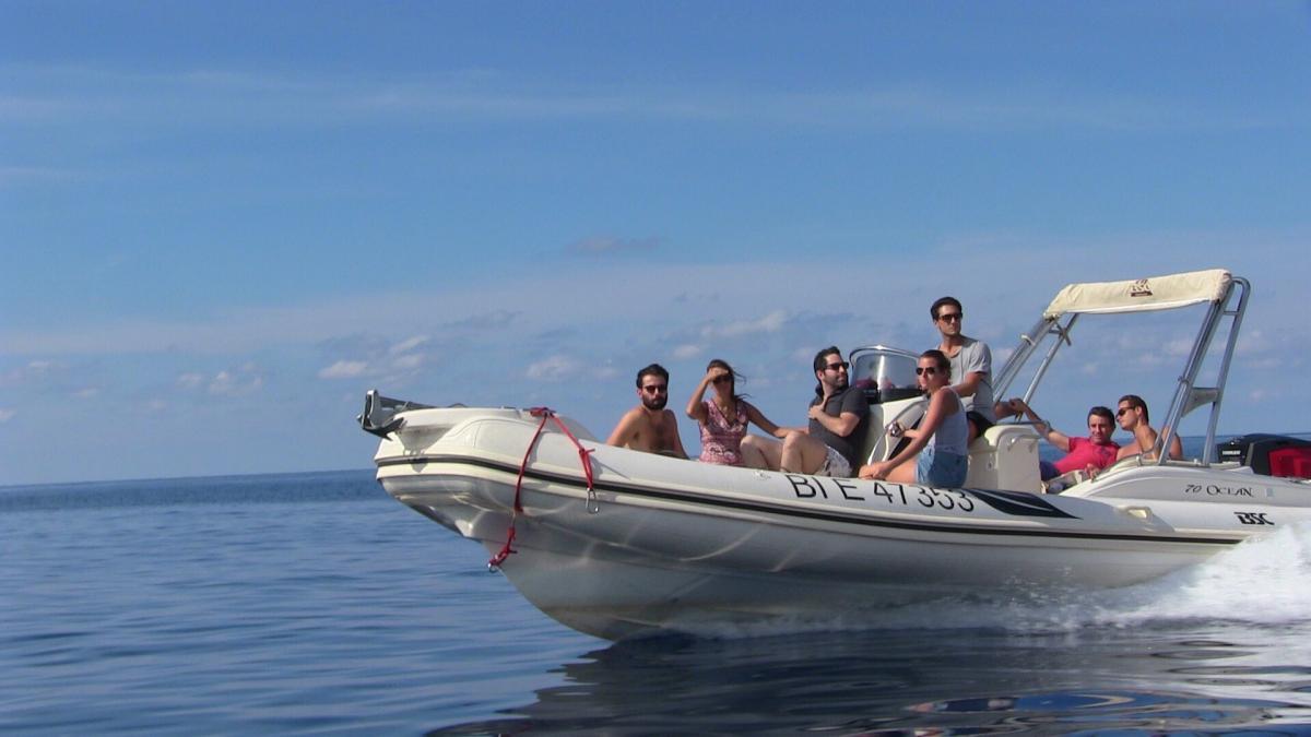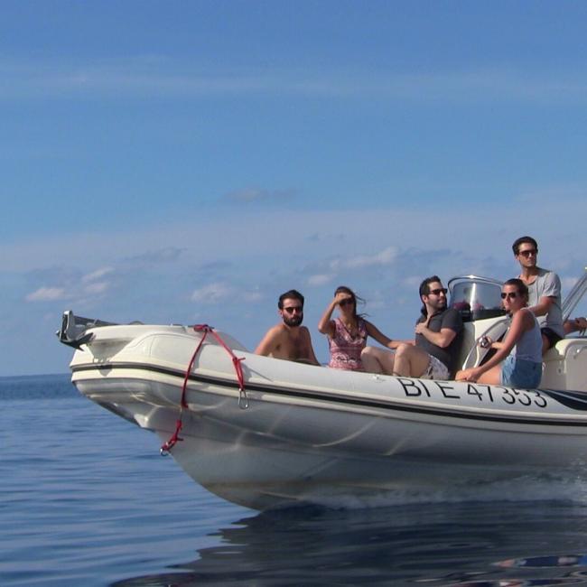 Duration of each tour: 1 hour. Zodiac-type boat with sunbathing areas, sun canopy, deck shower, seats and storage lockers... Four-stroke engines over 200 hp. Passenger civil liability insurance included.
