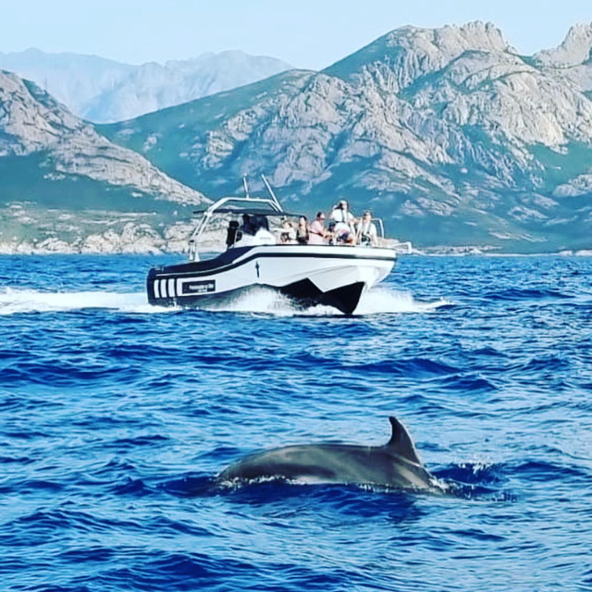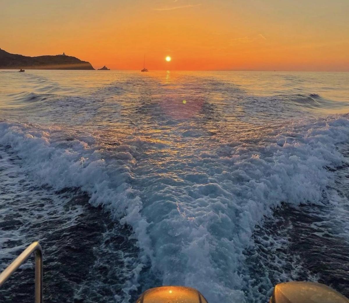 Partez à la découverte de la baie de Calvi à vitesse lente. Découvrez la citadelle vue de la mer puis la plage sauvage de l'alga aux eaux turquoises pour une baignade agréable. Nous rejoignons ensuite la réserve marine de la Punta Revellata pour admirer en silence ou en musique le coucher de soleil avec un apéritif Corse servi par votre capitaine.